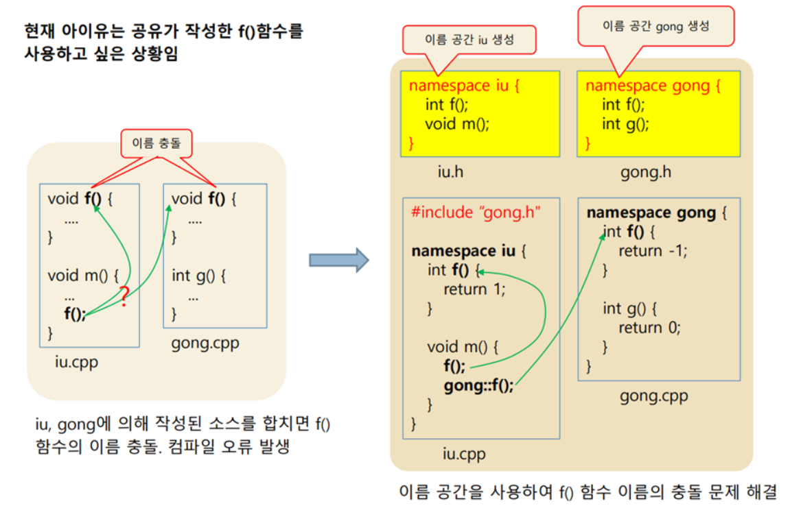 C++내의 예약어(keyword), 식별자(identifier)와의 충돌로 인한 문제점을 해결하기 위해 제시된 방법