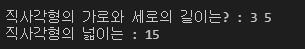 cout << "직사각형의 가로와 세로의 길이는? : ";