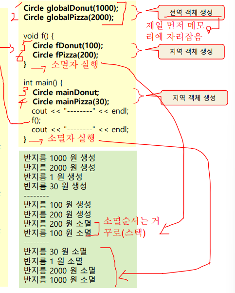 *지역 객체와 전역 객체 생성 소멸 순서 예시