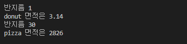 위는 피자의 면적을 출력해내는 클래스이다.