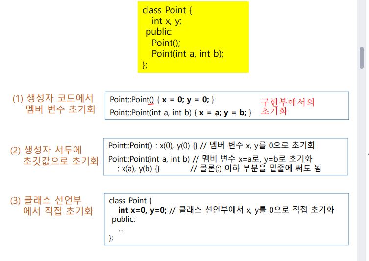 생성자의 주 역할은 멤버 변수의 초기화이기 때문이다.