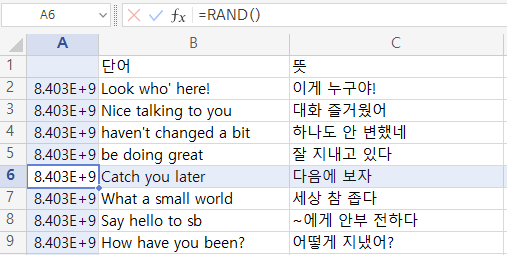 엑셀로 랜덤 영단어 암기장 만드는 법