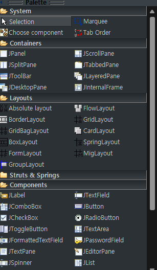 | [Java swing] 자바 스윙 4 : 윈도우 빌더 설치, 버튼 누르면 다른 패널로 전환하기(모듈 나누기), 창 닫기 (0) | 2022.05.01 |