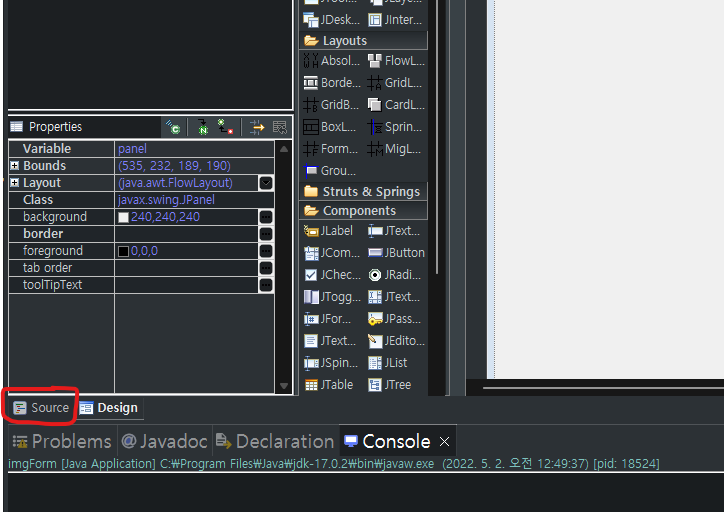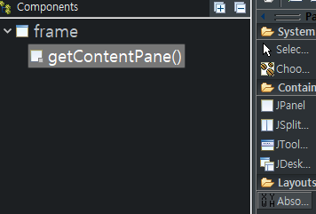 Layout에 있는 absolute Layout을 클릭, 그리고 getContentPane()을 클릭하면