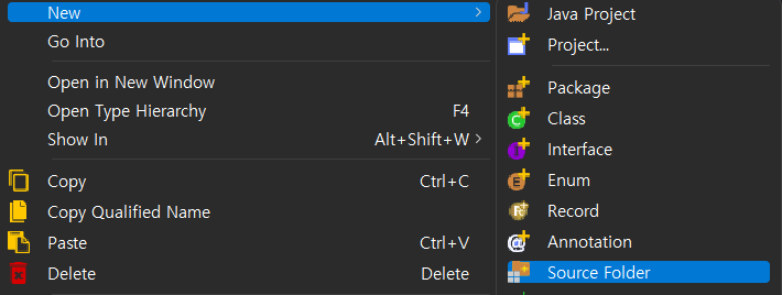 먼저 src폴더에 대해 소스 폴더를 생성한다.