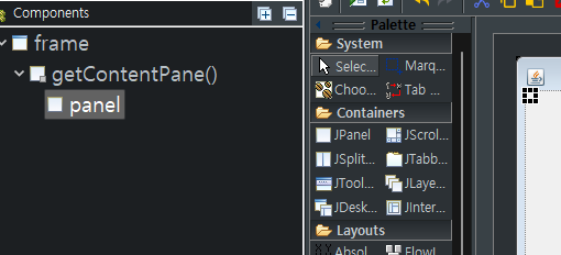 Containers의 JPanel을 클릭해 getContentPane() 위에 새로운 패널을 올려준다.