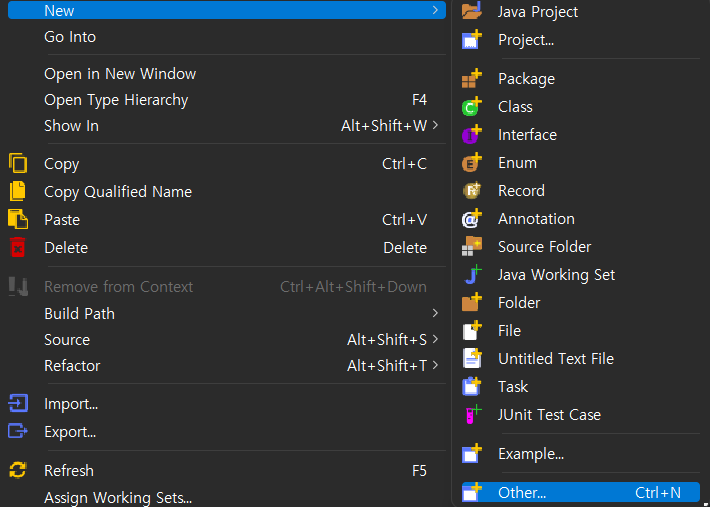 src 폴더 - new - other를 클릭한다.