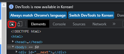 f12 버튼을 누르면 크롬의 개발자 도구 탭이 나타난다. 위의 버튼을 클릭하고