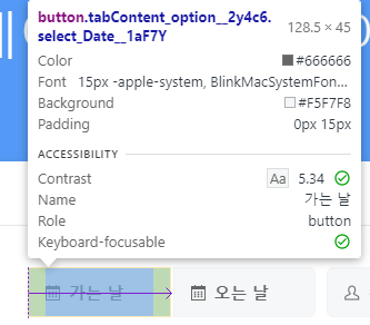저 요소에 해당하는 고유 클래스값을 찾아내는 방법으로 크롬에서 네이버 항공권 사이트가 열렸을 때 가는 날 버튼까지 자동으로 클릭되는 기능을 만들어 보겠다.