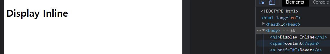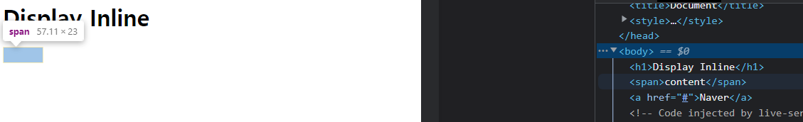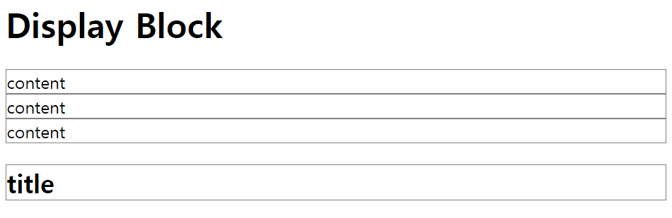 기본적으로 display: block이기 때문에 content가 가로로 꽉 차며 세로로 배치된 것을 확인할 수 있다.