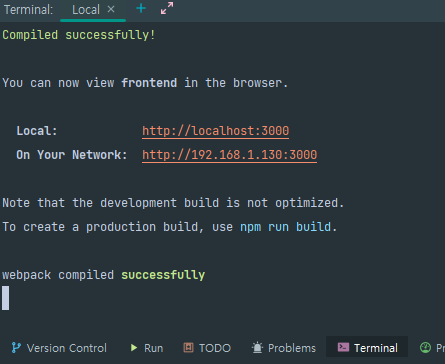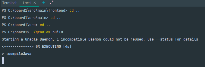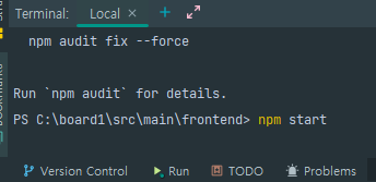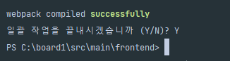 터미널을 열어서 src/main/frontend 경로로 맞춰줍니다.