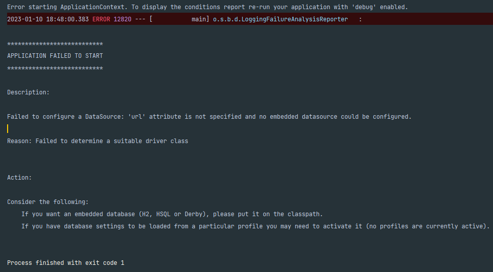 Failed to determine a suitable driver class 에러가 발생했다면 아래와 같이 해결합니다.