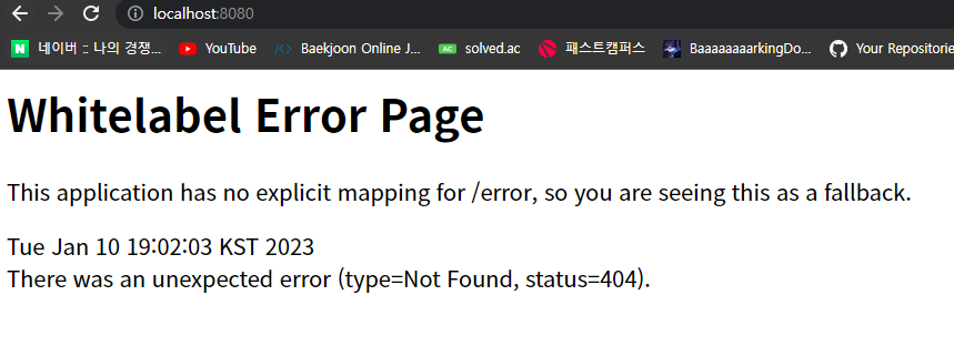 이제 스프링부트 서버를 실행시키고 localhost:8080으로 가면 아까와 같은 화면을 받아볼 수 있습니다.