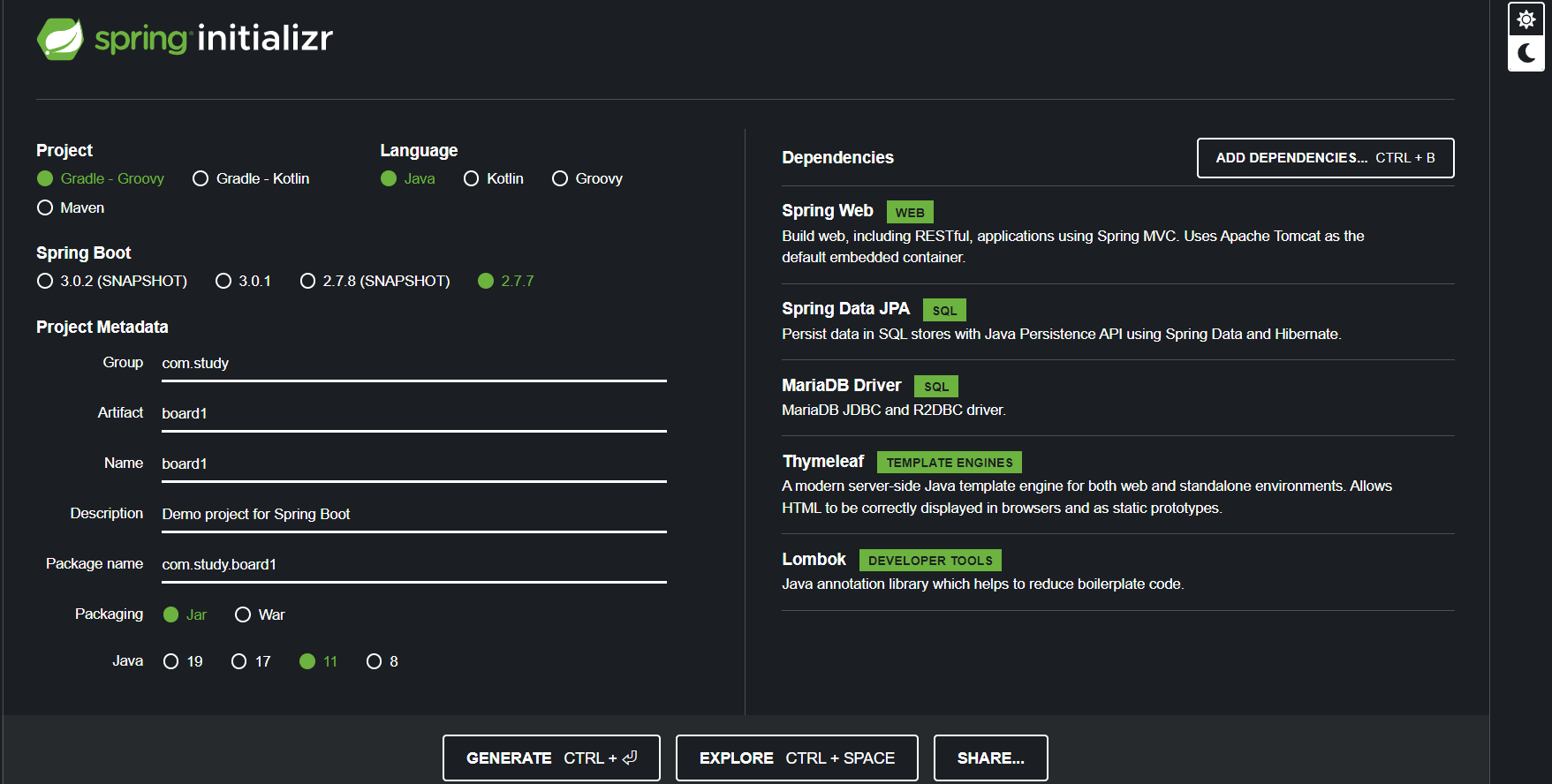 1. 스프링부트 프로젝트 생성