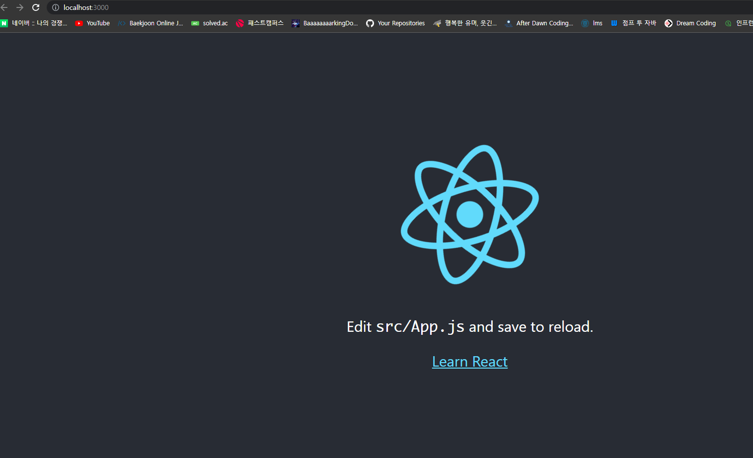 터미널에서 리액트를 실행해 봅니다.