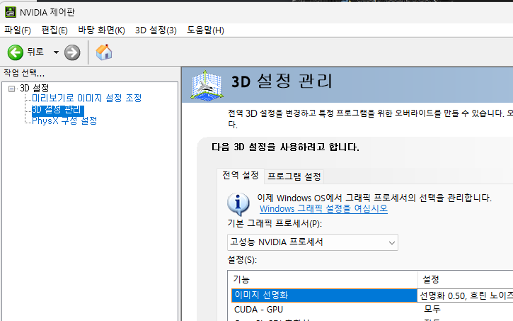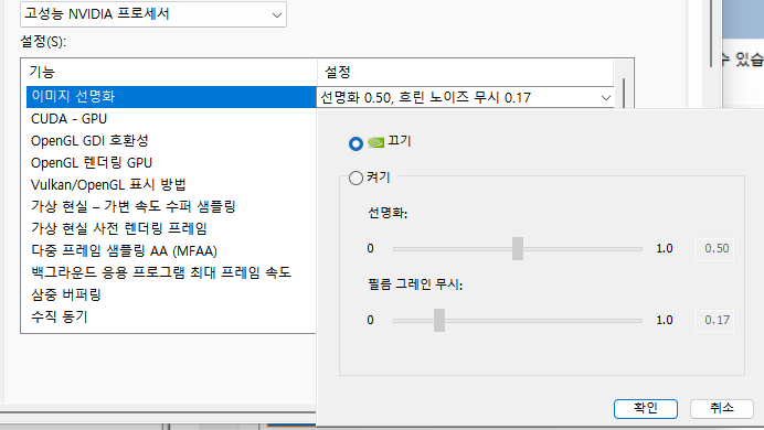 이미지 선명화를 끄고 컴퓨터를 재부팅하면 해결되었다!