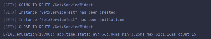clear버튼을 누르고 다시 이전 페이지로 돌아간 다음 GetxService 버튼을 누르면 인스턴스가 새로 생성되는 것을 확인할 수 있다.