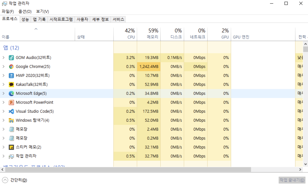 프로세스: cpu에서 연속적으로 실행되고 있는 모든 프로그램.