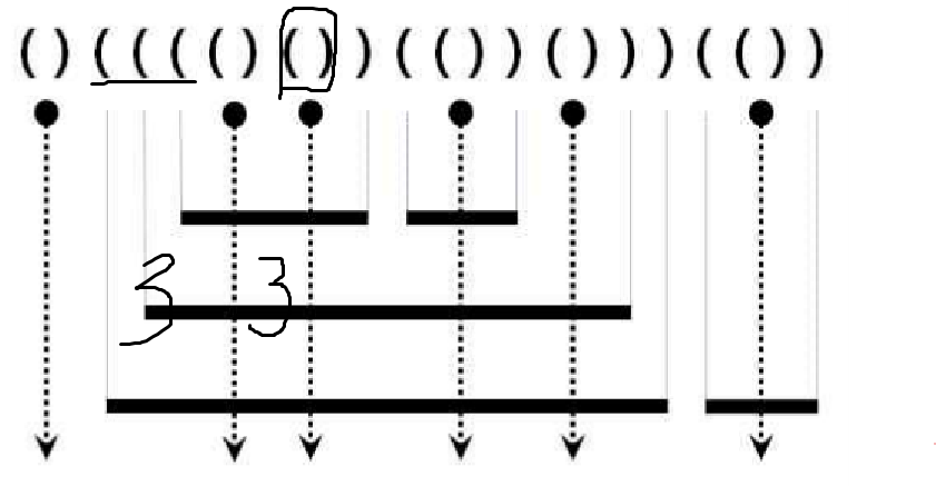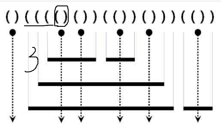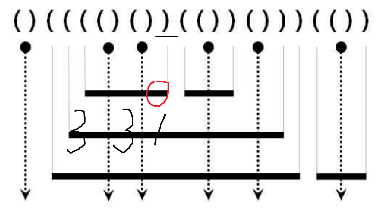 if (stick[i] == ')' && stick[i-1] == '(') {