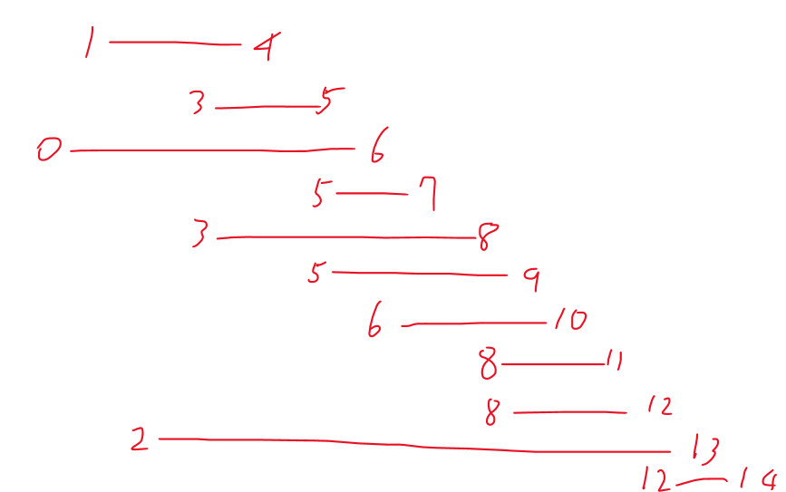 위의 예제 입력 케이스를 참고하여 x축을 회의 시간으로 해서 나타내면 아래와 같다.