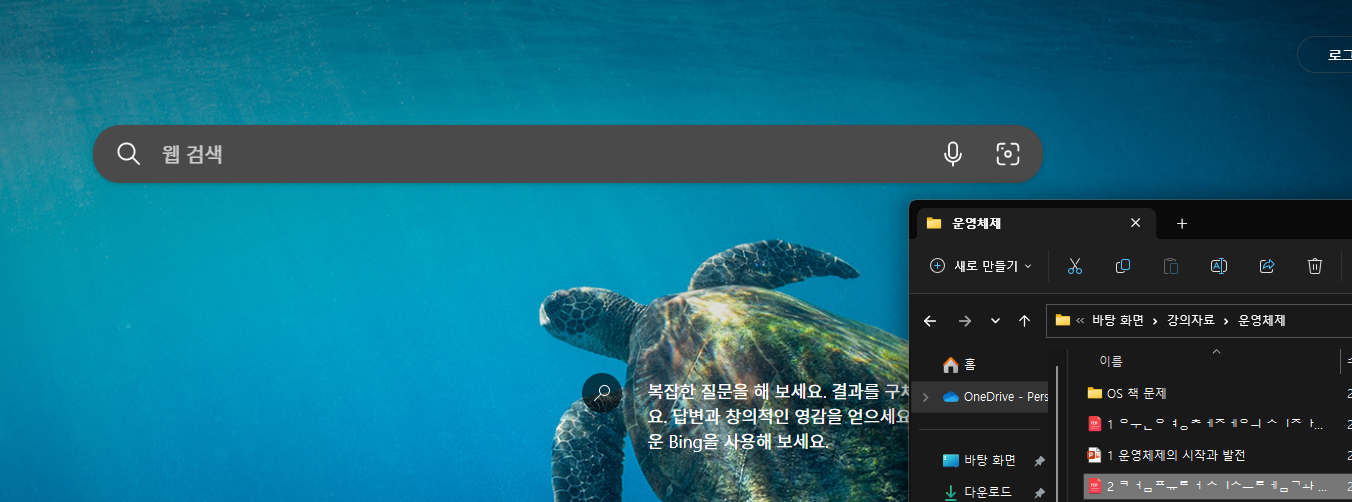 edge에서 pdf 파일을 열람합니다. 브라우저로 드래그 하면 브라우저에서 열람이 가능합니다.