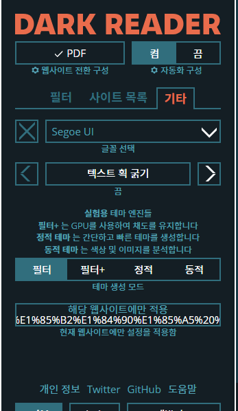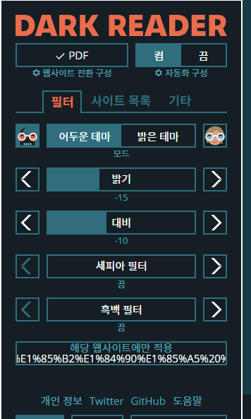 Dark Reader 확장 프로그램은 세부적인 설정을 커스터마이징 가능하게 하는 기능을 제공합니다.