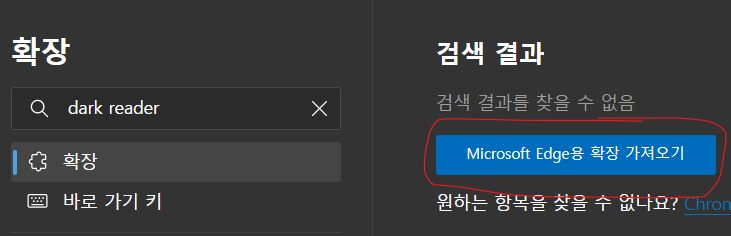 Microsoft Edge용 확장 가져오기를 클릭합니다.