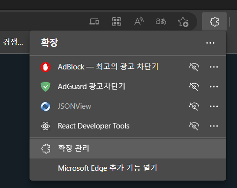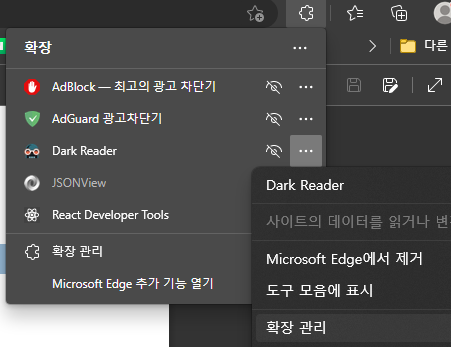 Edge 브라우저를 연다음 확장 탭에서 확장 관리를 선택합니다.