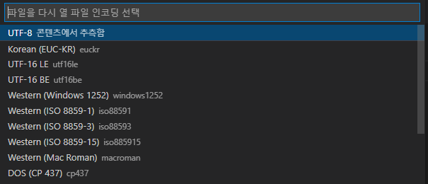 그래서 그냥 화면 오른쪽 아래에 있는 인코딩 선택 버튼을 눌러서 해결했다.