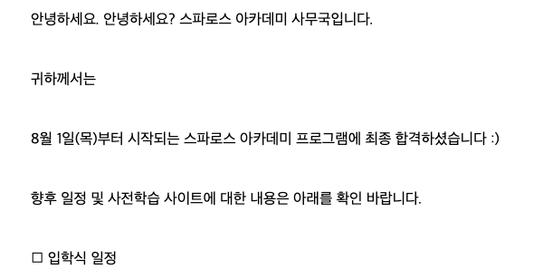 안녕하세요! 이번에 스파로스 아카데미 5기에 합격하게 되어 간략하게나마 후기글을 작성하려고 해요.