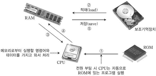 5. 모든 처리 완료 후 RAM에 저장된 결과들이 보조기억장치에 저장됨.