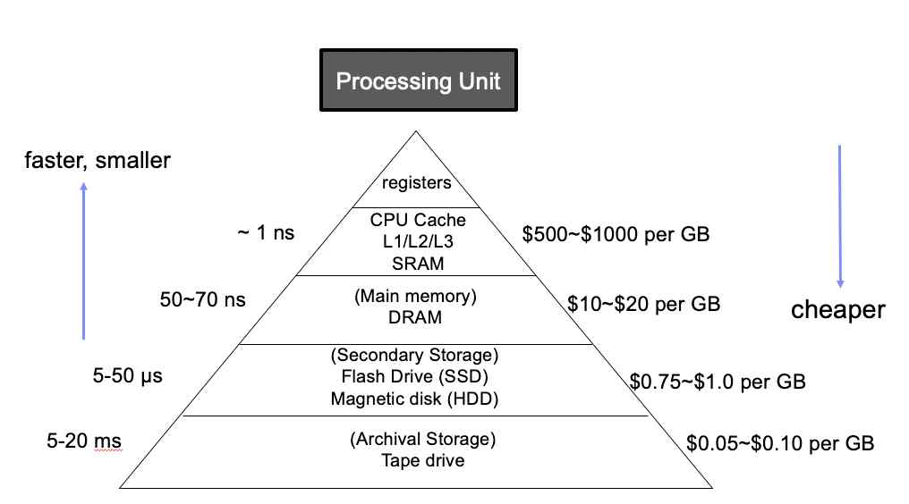 컴퓨터 메모리 설계의 3가지 목표는 대용량, 빠른 속도, 저렴한 가격이다.