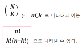 이항 계수 : n개의 서로다른 것들 중에서 k개를 선택하는 조합의 경우의 수