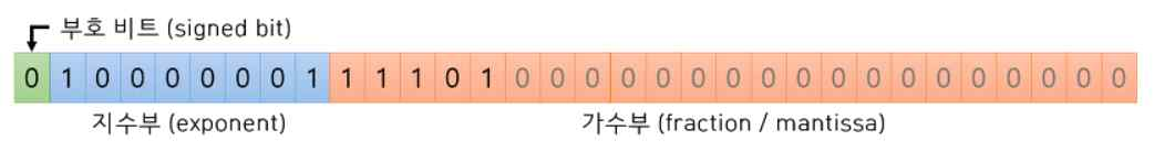• bias(127)값을 더하는 이유 : 지수가 음수일 경우를 포함해야하