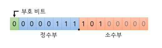 • 7.625는 앞선 방법으로 2진수로 변환시 111.101이된다. 이걸 이렇게 저장한다.
